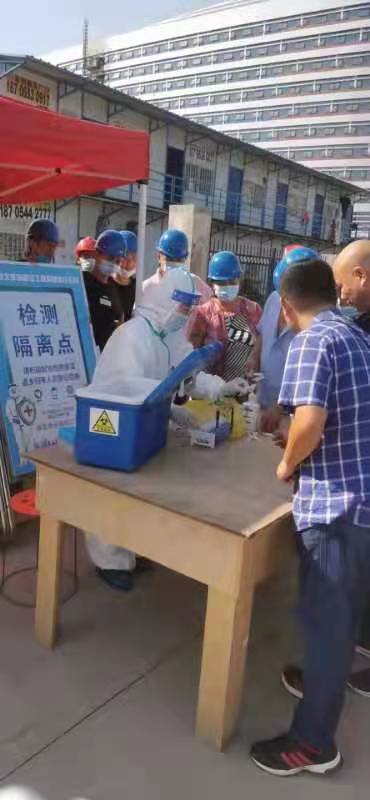 三是集中檢測,排查疫情風(fēng)險。針對部分外地來淮務(wù)工人員核酸檢測難的問題,特邀人民醫(yī)院檢測中心到施工現(xiàn)場對40余名外來務(wù)工人員進行集體核酸檢測。