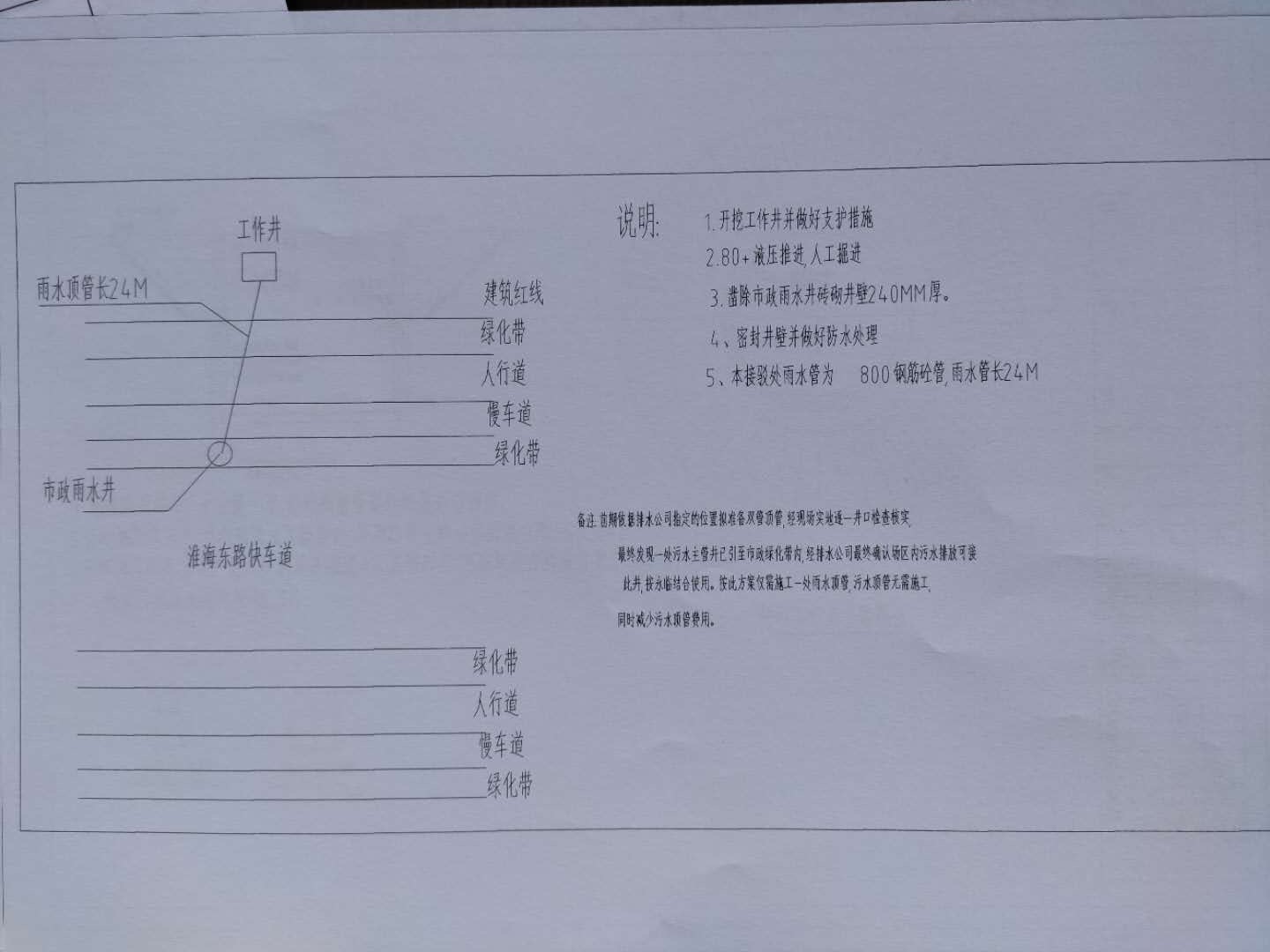 4、本次招標(biāo)范圍:投標(biāo)人完成招標(biāo)人紅線范圍內(nèi)指定的區(qū)域頂管至外線外淮海東路上指定的市政雨水井,保證排水通暢及政府相關(guān)部門驗(yàn)收標(biāo)準(zhǔn),頂管采用直徑Φ800鋼帶涵管,具體詳見清單。