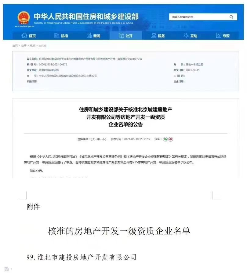 經(jīng)國家住建部核準,淮北建投控股集團下屬全資子公司淮北市建投房地產(chǎn)開發(fā)有限公司獲批國家房地產(chǎn)開發(fā)一級資質(zhì)。