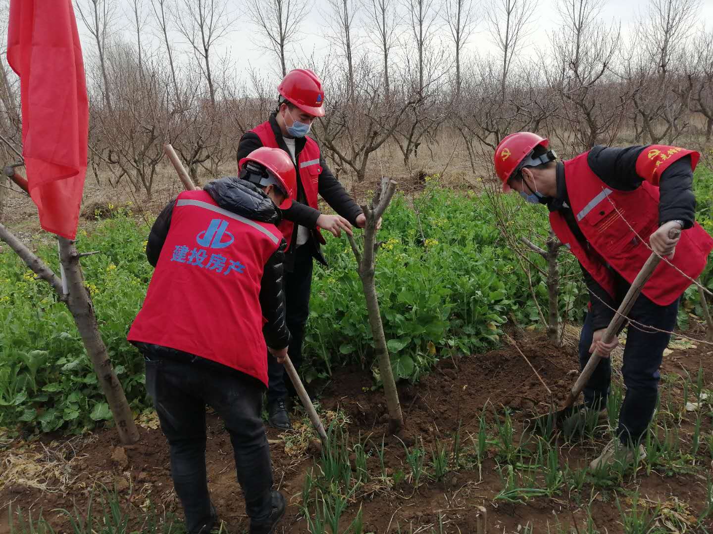 植樹添綠,青年行動(dòng)。連日來,房地產(chǎn)公司早謀劃、早宣傳、早行動(dòng),以在建項(xiàng)目為單位,積極組織青年員工開展“義務(wù)植樹”活動(dòng)?;顒?dòng)中,各項(xiàng)目部以小型、分散的方式,大家或兩人結(jié)對(duì)或三五人一組,扶苗、填土、培實(shí)、澆水,分工明確,相互配合,干勁十足。一鏟鏟泥土的填充,一滴滴汗水的流下,一棵棵樹苗的載種,公司廣大青年用實(shí)際行動(dòng)傳播綠色希望。