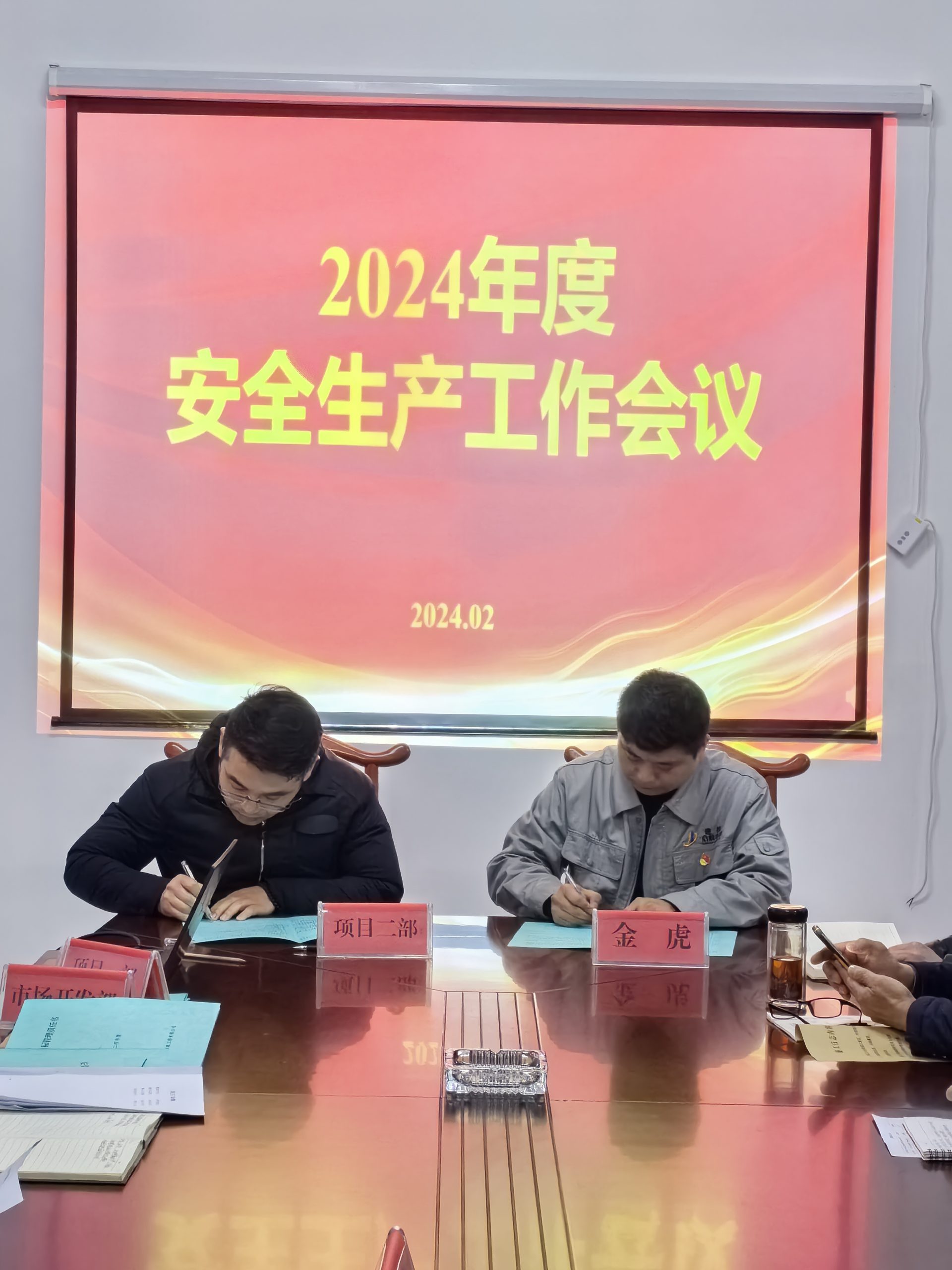 會上,公司副總經理劉勇、金虎分別與各部室、項目部負責人簽訂了《2024年安全生產目標管理責任書》。