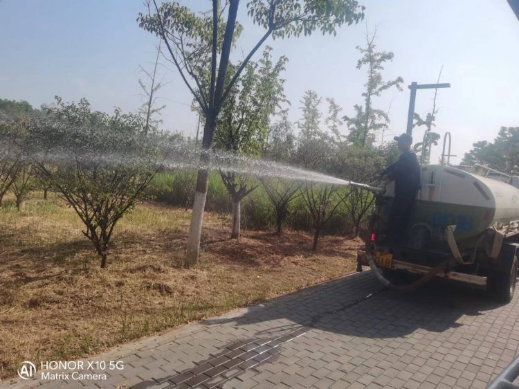 一是采取水車澆水、自動噴灌、人工灑水等多種澆灌方式,對干旱嚴(yán)重的區(qū)域重點(diǎn)澆灌,確保做到細(xì)澆慢灌,澆足澆透。二是更新設(shè)備借助科技力量,在綠金湖公園新增自動噴淋系統(tǒng),既滿足草坪、小灌木、樹木生長的需要,又比傳統(tǒng)人工澆水更加省時(shí)省力,大大提高了用水效率。三是合理調(diào)整作業(yè)時(shí)間,采取每天上午提早作業(yè),下午推遲作業(yè)的方式,避開高溫時(shí)段進(jìn)行澆灌,防止出現(xiàn)植株灼傷現(xiàn)象。四是做好人員保障,準(zhǔn)備充足的飲用水和防暑藥品,督促一線工作人員做好防護(hù)措施,避免曬傷、中暑等情況發(fā)生。
