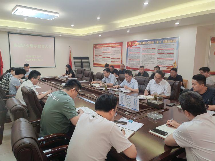 2024年6月13日上午,淮海建工公司召開廉潔從業(yè)警示教育大會,公司班子成員、部門負(fù)責(zé)人、項(xiàng)目經(jīng)理參加了會議。