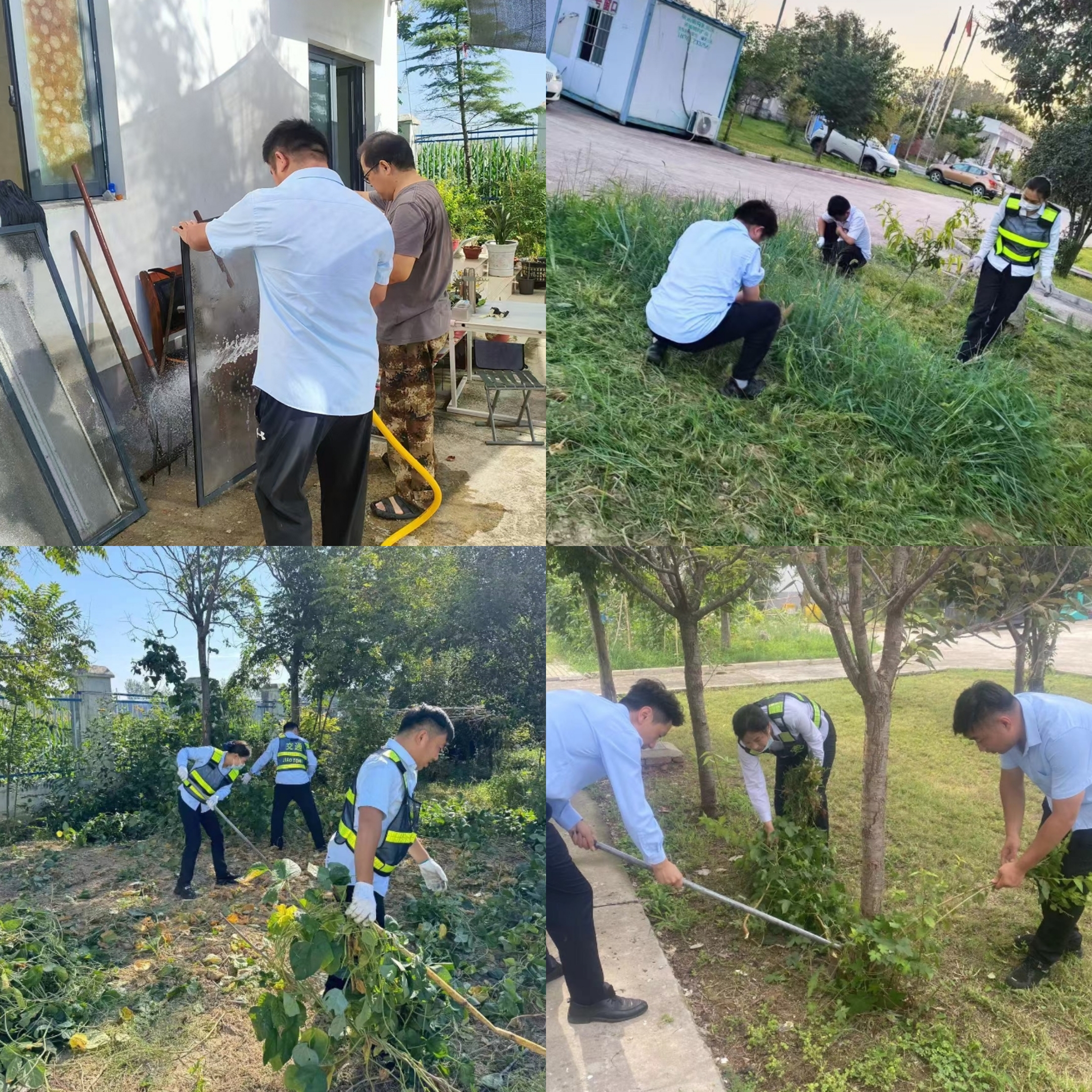 活動現(xiàn)場,雖然天氣炎熱,但是擋不住黨員群眾們勞動的熱情,大家發(fā)揚不怕苦不怕累不怕臟的精神,對站內(nèi)生活區(qū)域的所有窗臺進行擦試,確保玻璃干凈整潔,窗明桌凈;按照分配好的耕作區(qū)域團結(jié)協(xié)作,清理站內(nèi)綠化草坪并將垃圾按照要求進行分類投放,通過大家的共同努力,使站內(nèi)環(huán)境煥然一新。