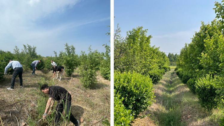 活動(dòng)現(xiàn)場(chǎng),黨支部書記李振昊帶領(lǐng)全體黨員對(duì)綠金湖苗圃基地苗木開展日常養(yǎng)護(hù)工作。全體黨員干部分工協(xié)作、默契配合,有序完成除草除雜、修剪、澆灌等工作,使苗圃環(huán)境煥發(fā)新貌,以實(shí)際行動(dòng)詮釋黨員“勇于吃苦、樂于奉獻(xiàn)”的精神品質(zhì)。
