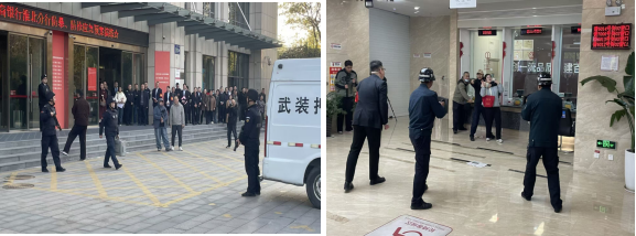 本次演練聚焦實(shí)戰(zhàn)化要求,設(shè)置兩大高風(fēng)險(xiǎn)場(chǎng)景,場(chǎng)景一:武裝押運(yùn)車組遭遇“歹徒”暴力搶劫;場(chǎng)景二:營(yíng)業(yè)網(wǎng)點(diǎn)遭遇“歹徒挾持人質(zhì)”搶劫,全流程模擬突發(fā)事件處置。