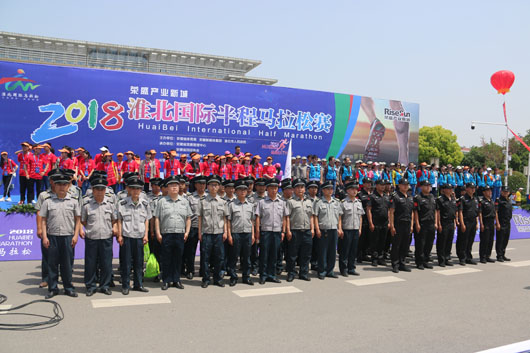 2018年5月13日,淮北國際半程馬拉松比賽圓滿落幕,此次馬拉松國際賽事,吸引了6000余名中外選手參賽。本次活動規(guī)模大,區(qū)域廣,線路道口復雜,參與人數(shù)多等因素,為確保比賽正常進行,公司領導層高度重視,派遣200名隊員參加此次馬拉松比賽安全保障工作,明確執(zhí)勤區(qū)域的工作職責,一切準備工作有條不紊地進行。