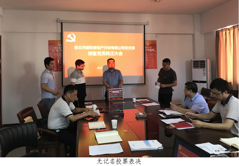 2018年7月13日下午,建投房地產(chǎn)公司黨支部在黨員活動室召開了預備黨員轉(zhuǎn)正大會,研究討論公司支部預備黨員王申瑞轉(zhuǎn)正問題。