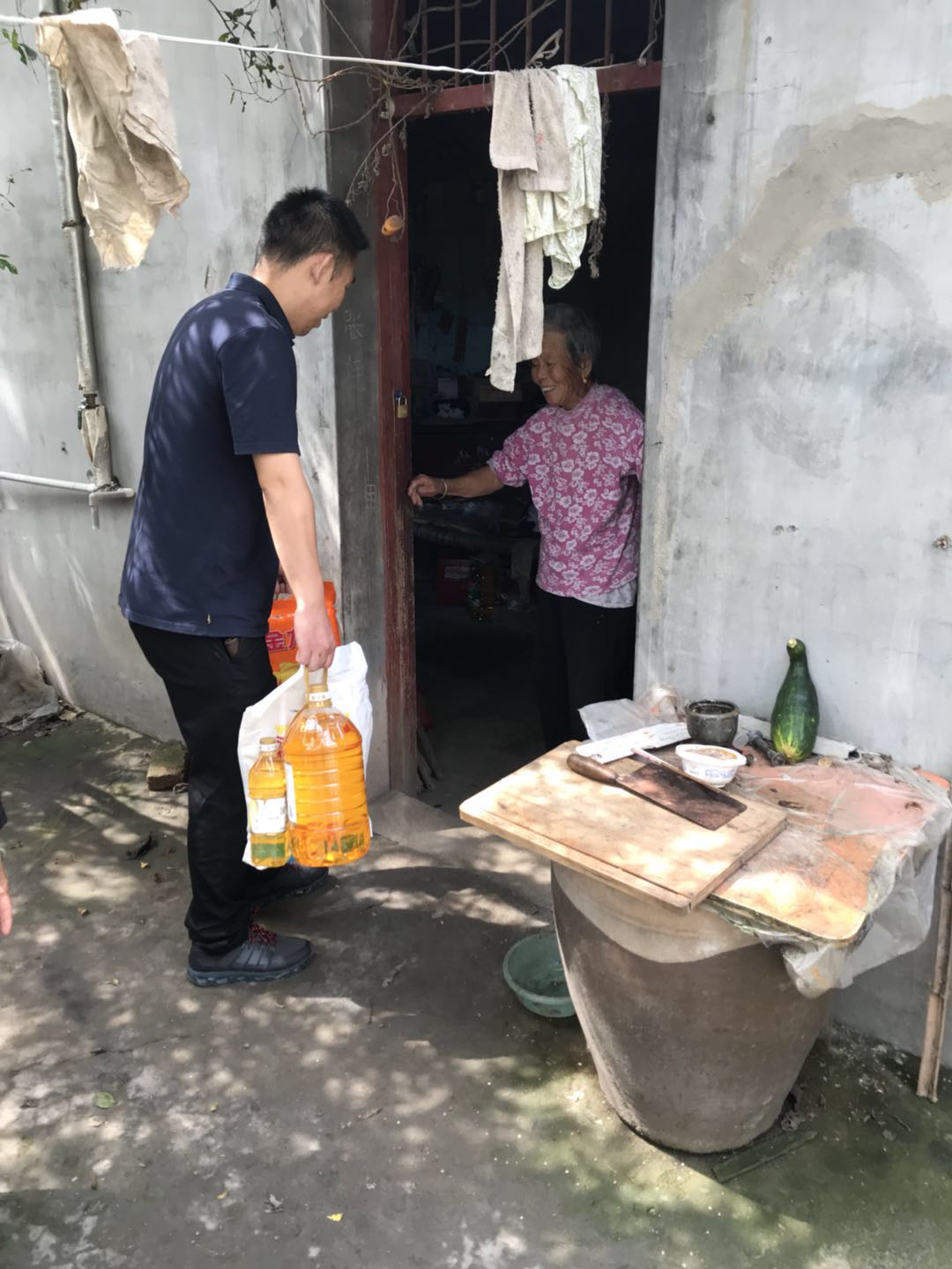 中秋來臨之際,家家忙團(tuán)圓。為貫徹黨和國家對貧困人員的方針政策,彰顯社會主義的優(yōu)越性,東盛公司采購了過節(jié)所需的米、面及食用油,送至黃張氏家中。黃張氏對于東盛公司幫扶小組成員的到來表示熱烈歡迎。