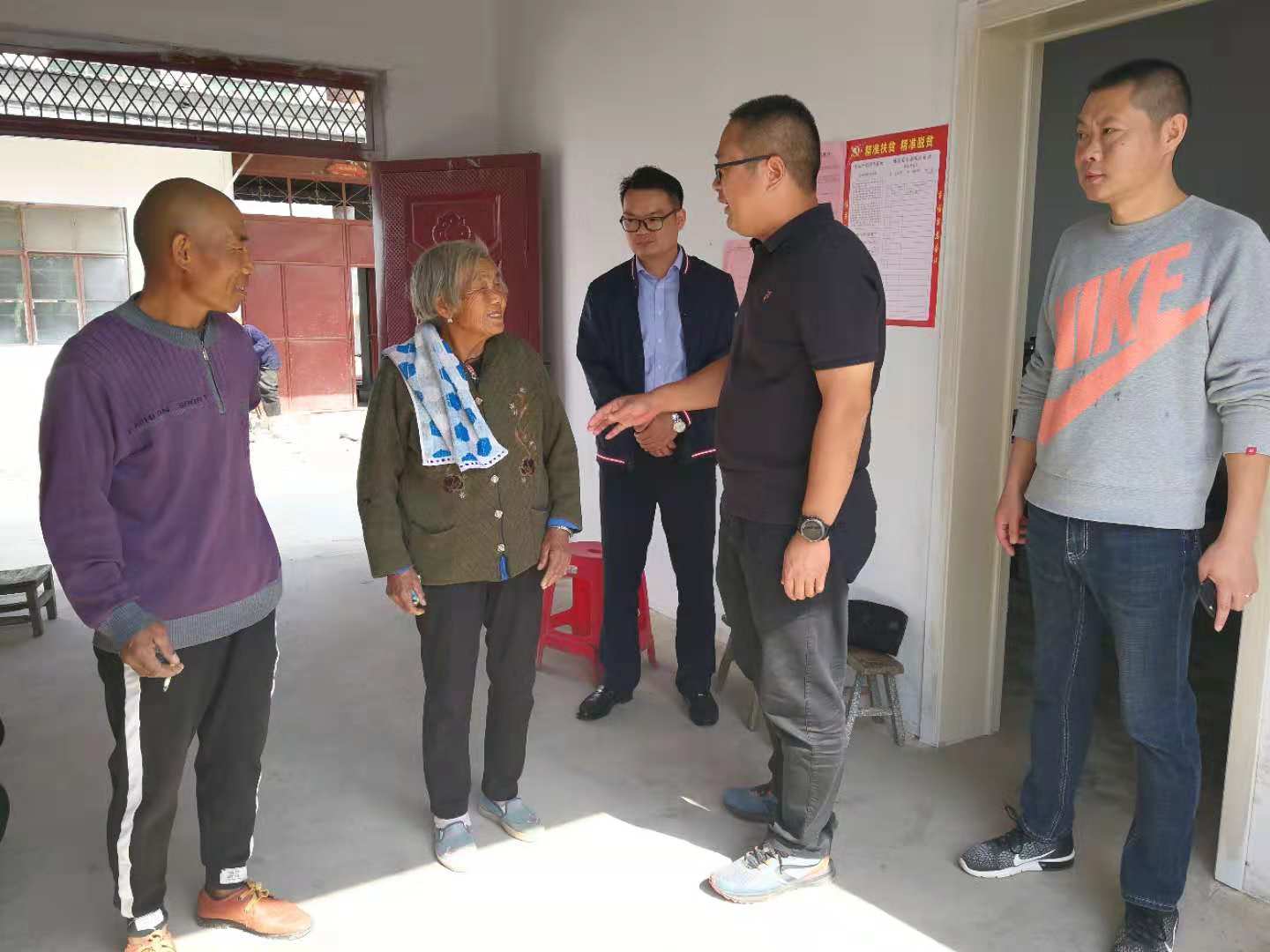 10月13日上午,保障房扶貧小組來(lái)到孫嚴(yán)玲老人家中積極開(kāi)展“同吃一桌飯,共做一件事,脫貧一條心”活動(dòng),自帶食材與老人一起吃午飯、拉家常,了解老人近期的生活、身體狀況,并幫助老人打掃了屋內(nèi)和庭院,臨行囑咐孫嚴(yán)玲老人天氣漸涼注意保暖。孫嚴(yán)玲表示很開(kāi)心,由衷感嘆:黨的政策真好,讓她感到很溫暖。