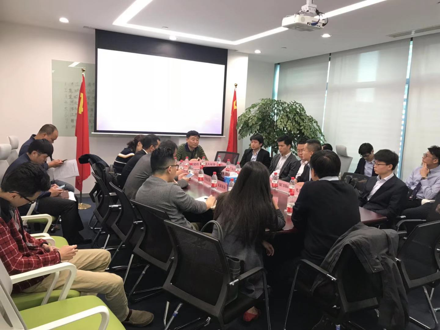 2018年10月31日下午,集團(tuán)公司駐上海辦事處負(fù)責(zé)人王智在辦事處會議室主持召開第一次銀企對接會。上海市金融辦金融管理處處長王宏君、集團(tuán)公司融資一部部長劉風(fēng)雷、融資二部李子恒及寧波銀行金橋支行行長肖磊、國元證券副總經(jīng)理王琦、長城信托副總經(jīng)理顧光臣、上海裕安投資集團(tuán)投行部總經(jīng)理蔡為群,光大銀行聯(lián)洋支行行長張建紅等21家金融機(jī)構(gòu)代表參加了此次對接會。