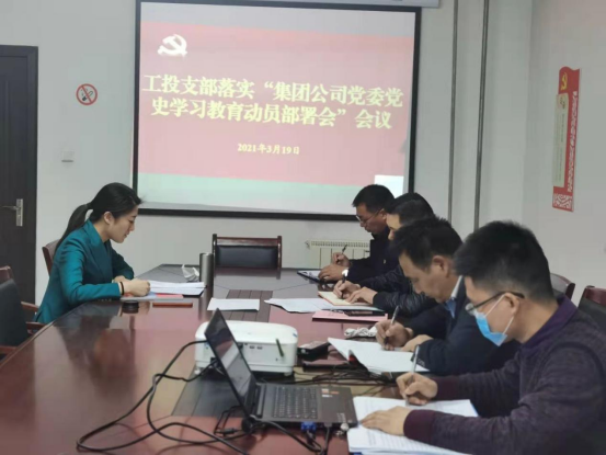 為貫徹落實集團公司黨委黨史學習教育動員部署大會的會議精神,3月19日下午,工投黨支部召開黨史學習教育動員大會。